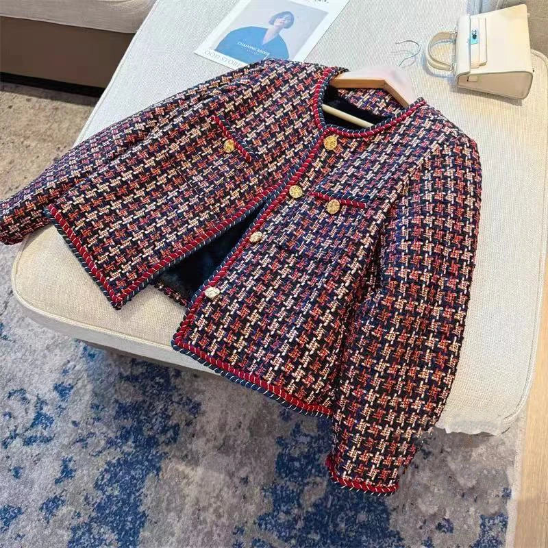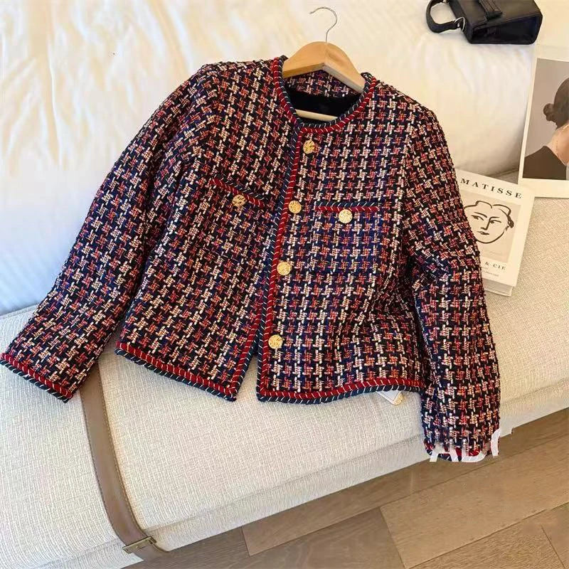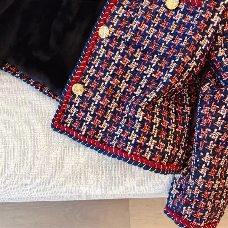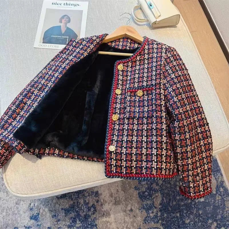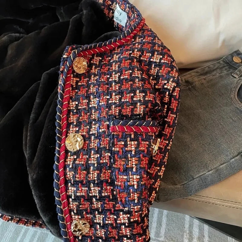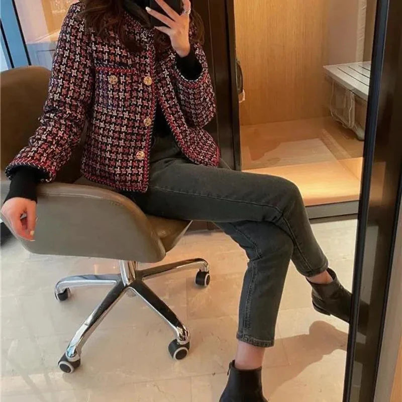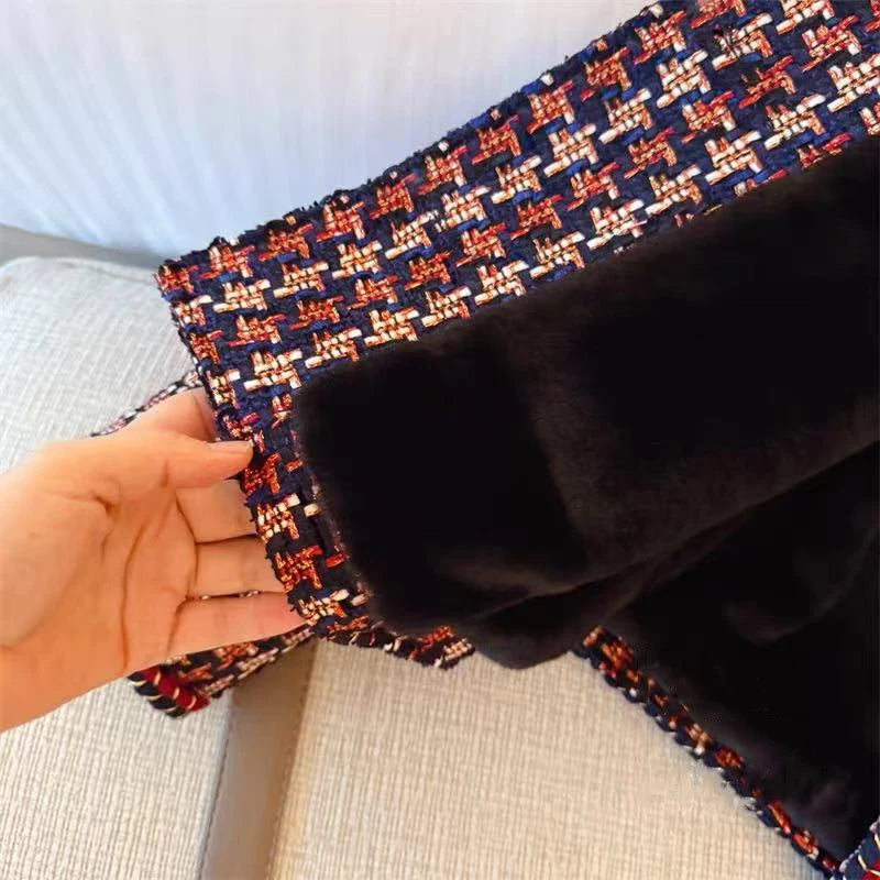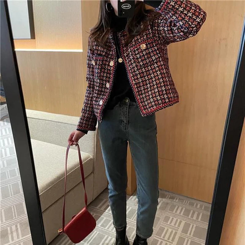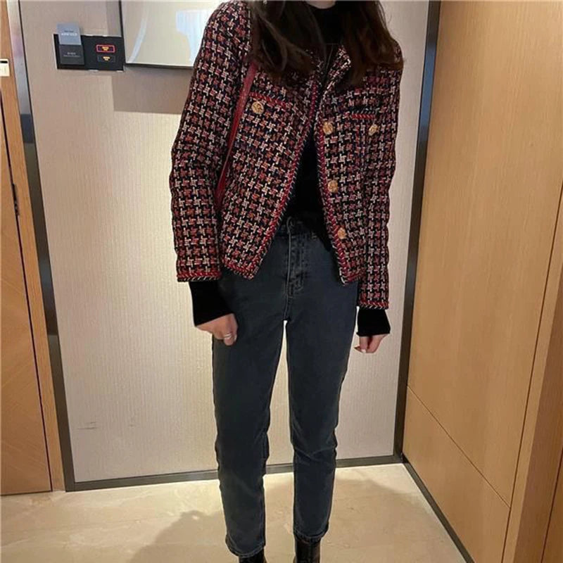 Bxoxo Patchwork Tweed Women Jackets for Women 2024 Winter Fashion Thick Warm Crop Coats Y2K Korean Streetwear Loose Plaid Outwear New