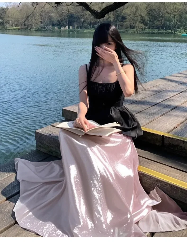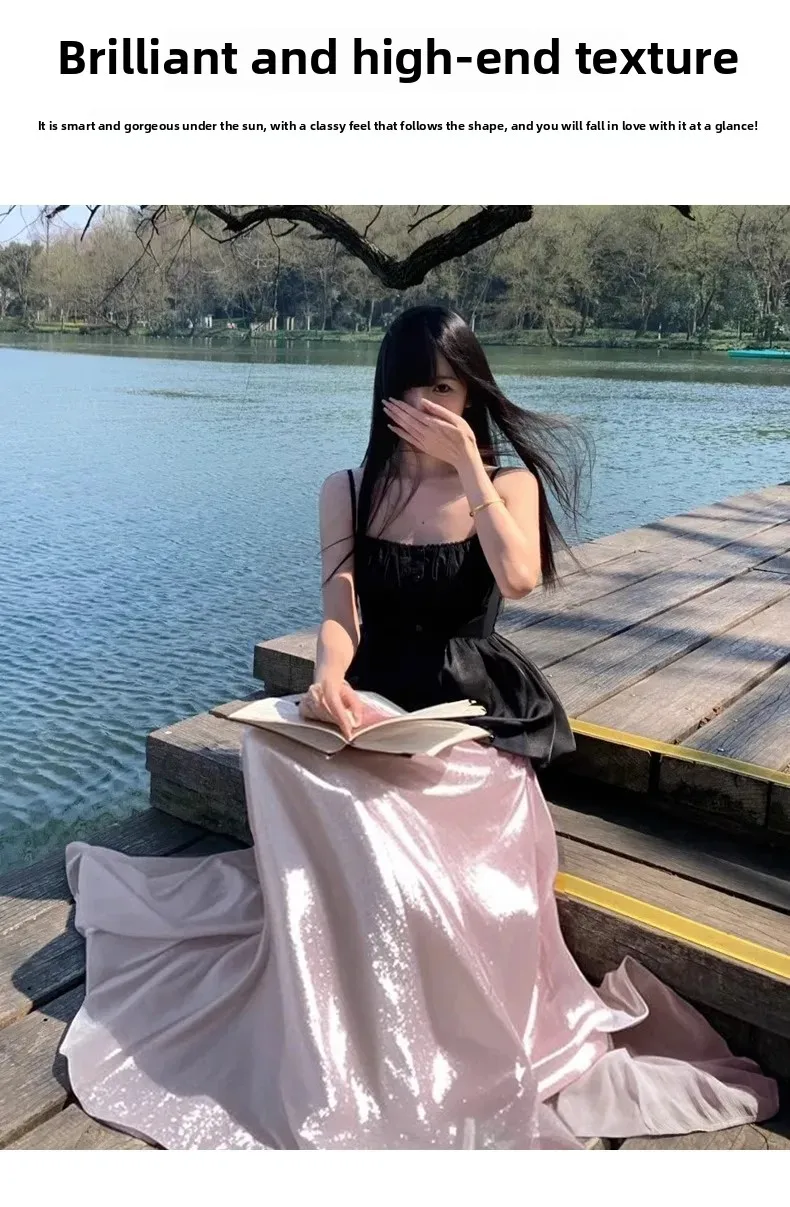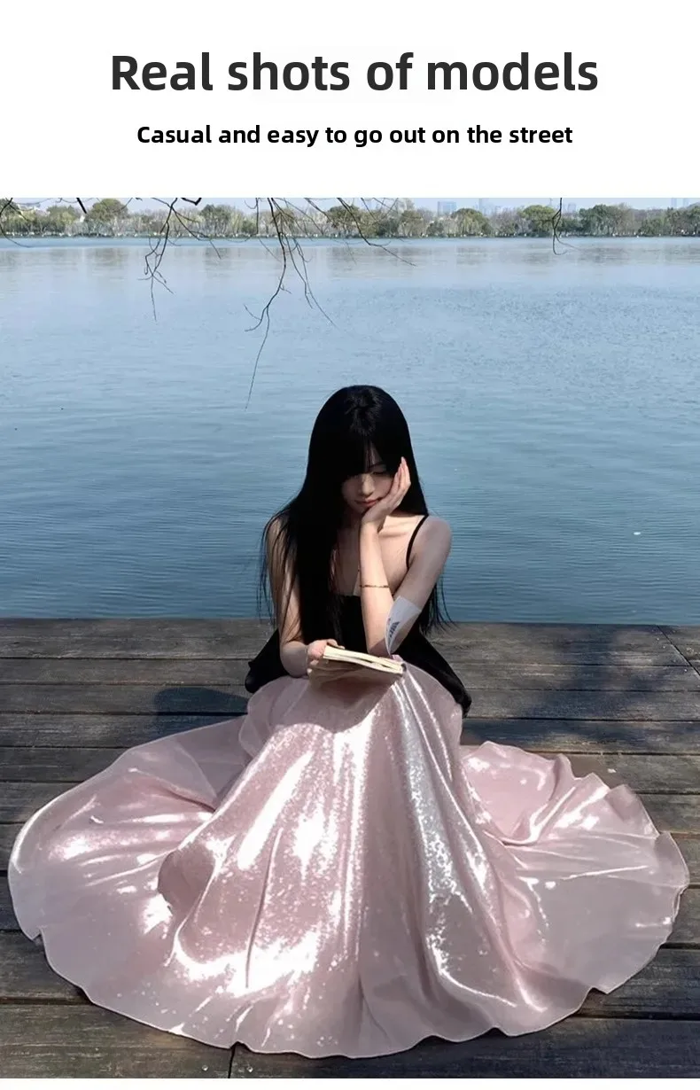 • Color & Pattern : The pure pink color and sparkling effect make this skirt a standout piece, perfect for adding a pop of color to your summer wardrobe.