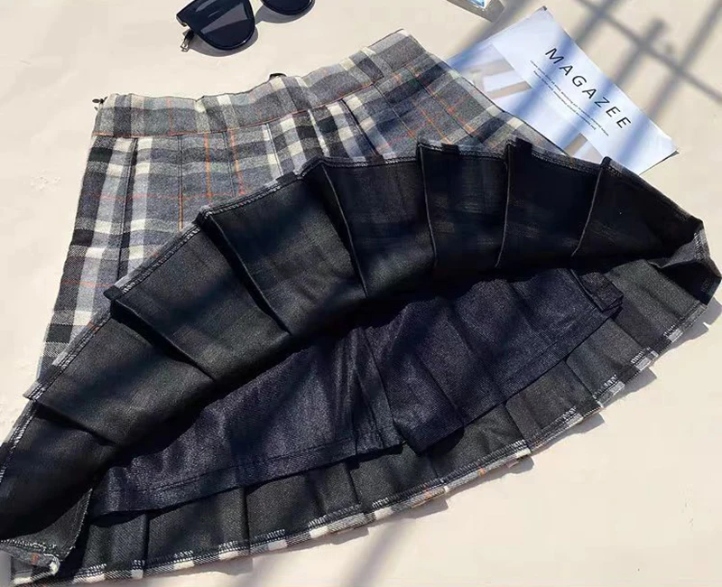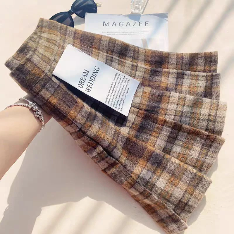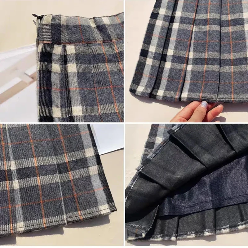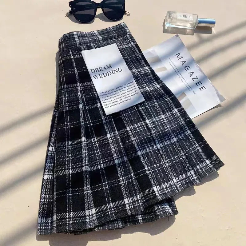 Bxoxo Plaid Woolen Pleated Skirts for Women Fall Winter High Waist Preppy Warm Mini Skirts Lady Fashion Korean All-Match A Line Skirts
