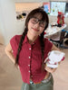 Bxoxo Pure Cotton Red Plaid Shirt Women Slim Sexy Cropped Short Sleeve Y2K Blouse Vintage American Streetwear Female Summer Tops