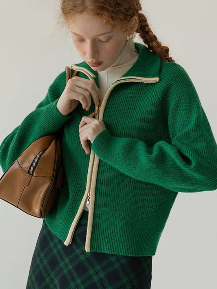 Bxoxo Retro American Preppy Style Cardigan Women Long Sleeve Loose Casual Knitted Sweaters Fall New Double Zipper Vintage Female Tops
