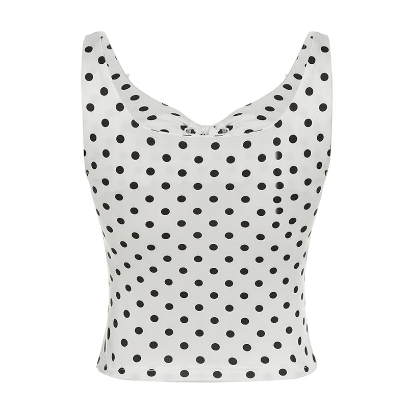 BXOXO Retro Classical Polka Dot Shirring Camisole Tops Summer Causal Office Lady Simple Chic Blouses