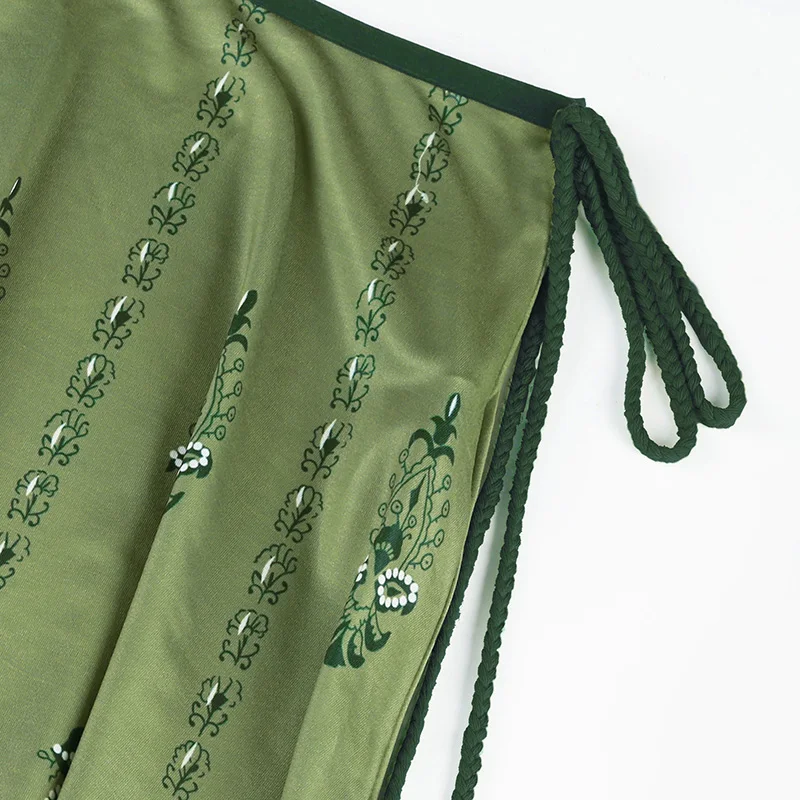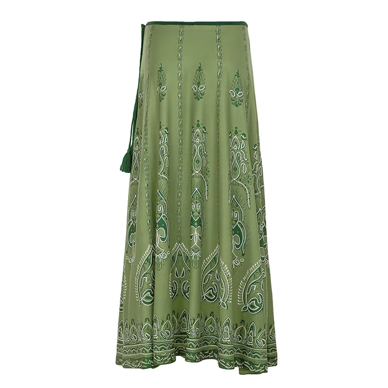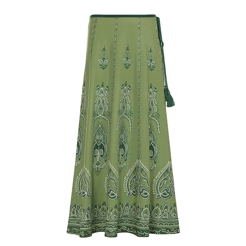 Bxoxo Retrp Print Knitted Long Skirts Chic Lace-up Low Rise Loose A-line Vintage 2000s Skirts for Women y2k Aesthetic Clothing