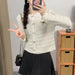 Bxoxo Ribbon Button Up Knit Cardigan Sweater for Women Long Sleeve Button Front Sweater Jacket Teen-girl Y2K Cute Outfit