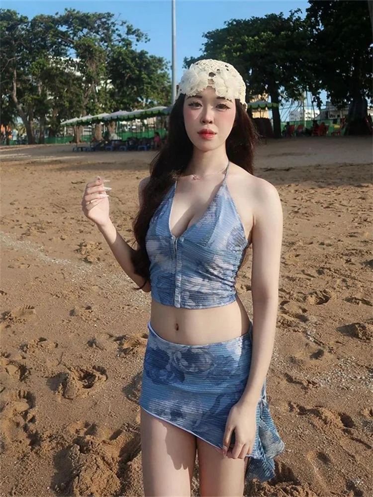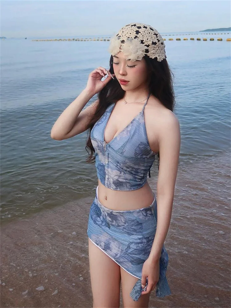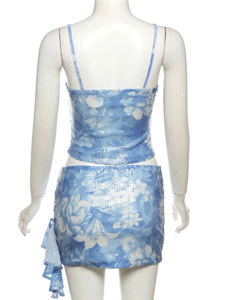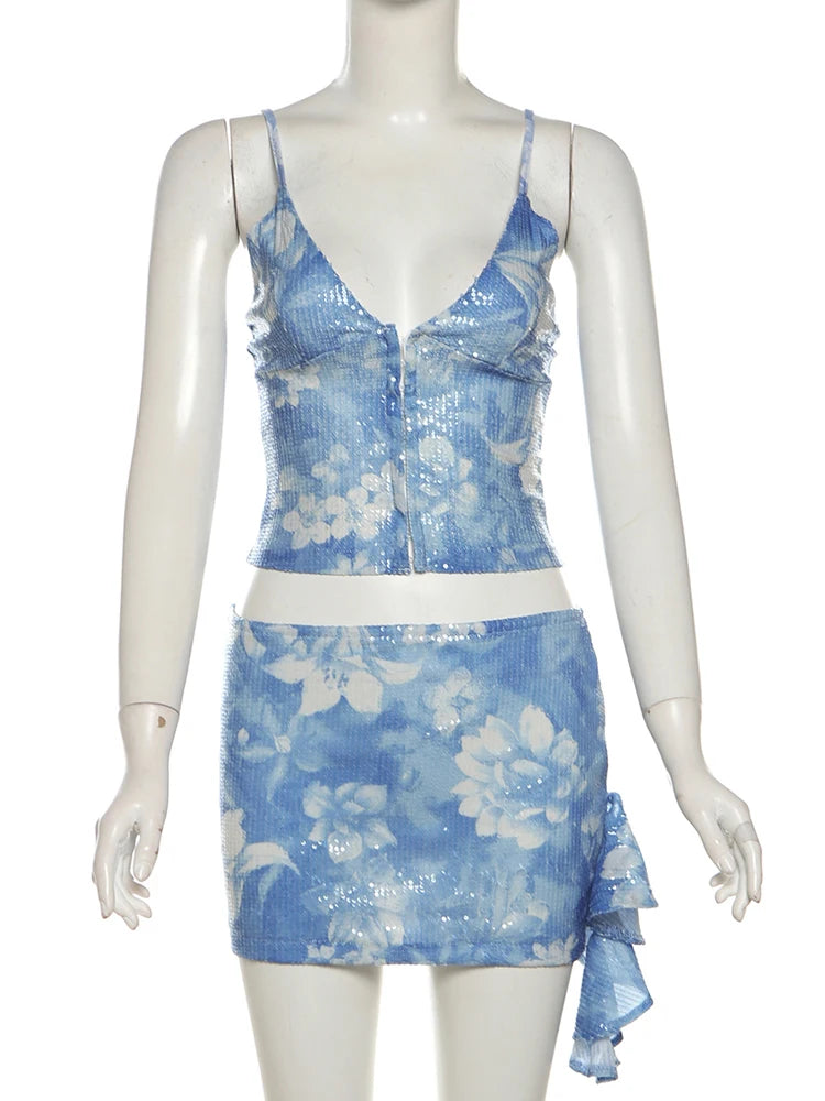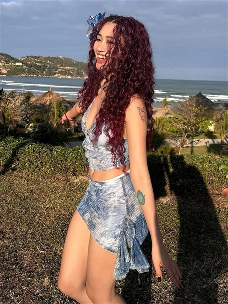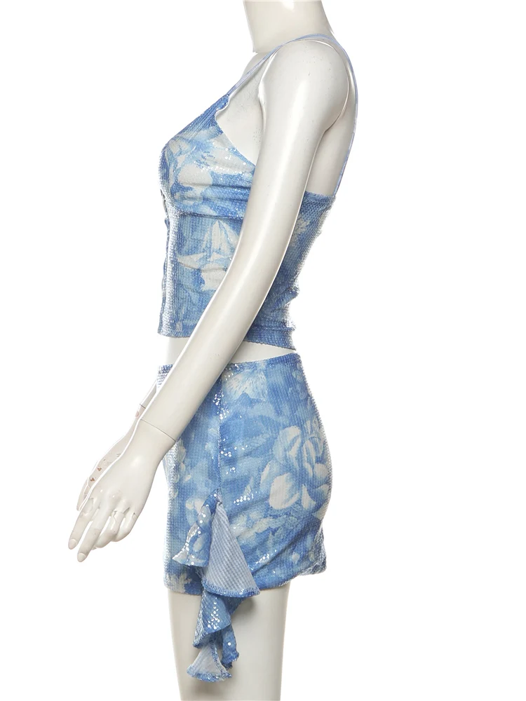 BXOXO Sexy 2 Piece Set Women Art Print Halter v-Neck Backless Sleeveless Tops+Short Tassel Bottoms Beach Party Matching Suits