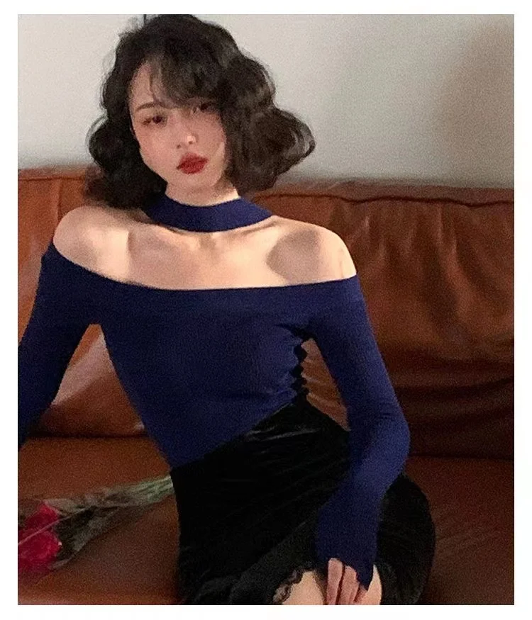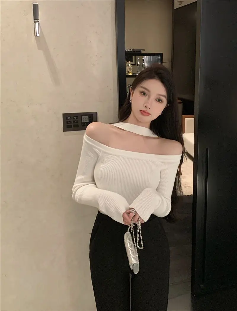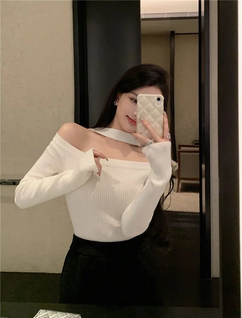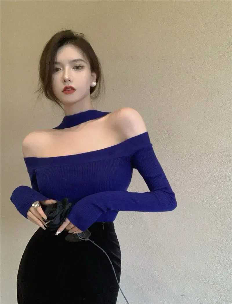 Bxoxo Sexy Halter Sweater Slash Neck Off Shoulder Pullovers Spring Autumn Women Tops Knitted Korea Style Blue Rose White Black White