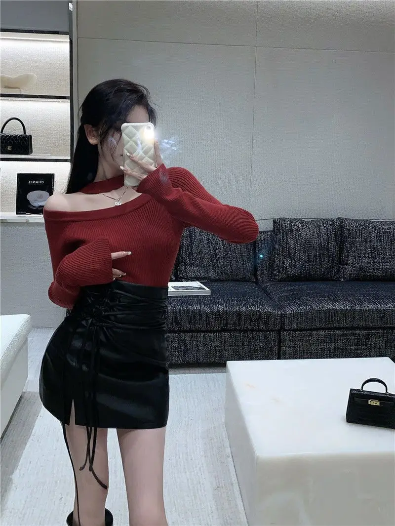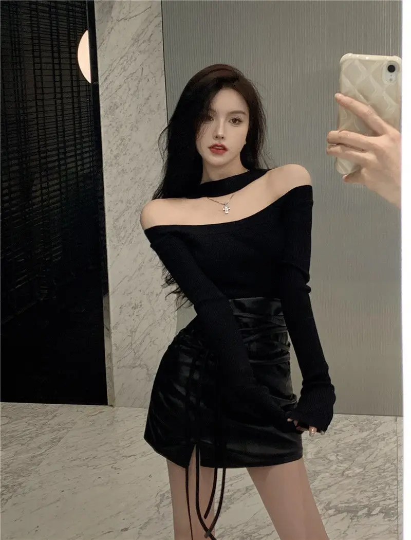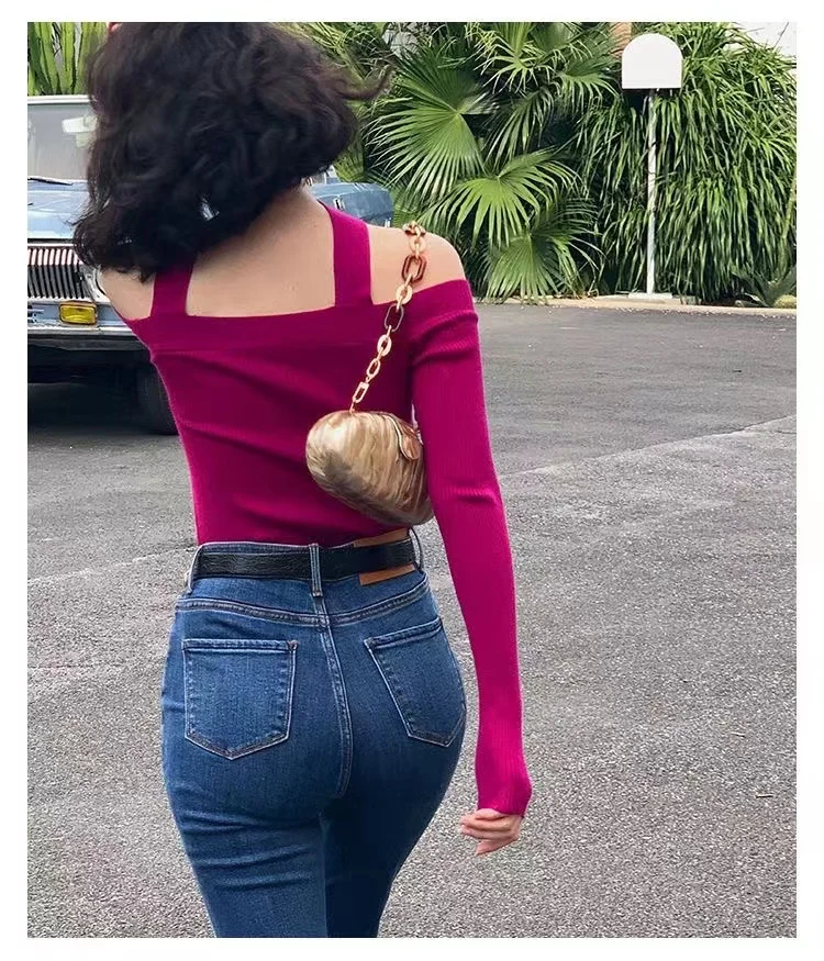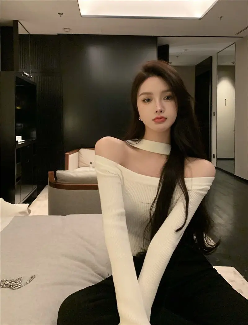 Bxoxo Sexy Halter Sweater Slash Neck Off Shoulder Pullovers Spring Autumn Women Tops Knitted Korea Style Blue Rose White Black White