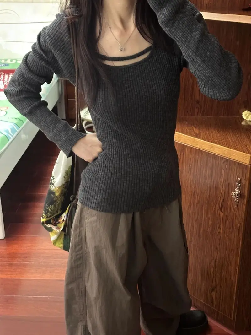 Bxoxo Sexy Hollow Solid Sweater Women Y2k Aesthetic Slim Fit Knitted Harajuku Jumper All Match Korean Sexy Pullover Female Knitwear