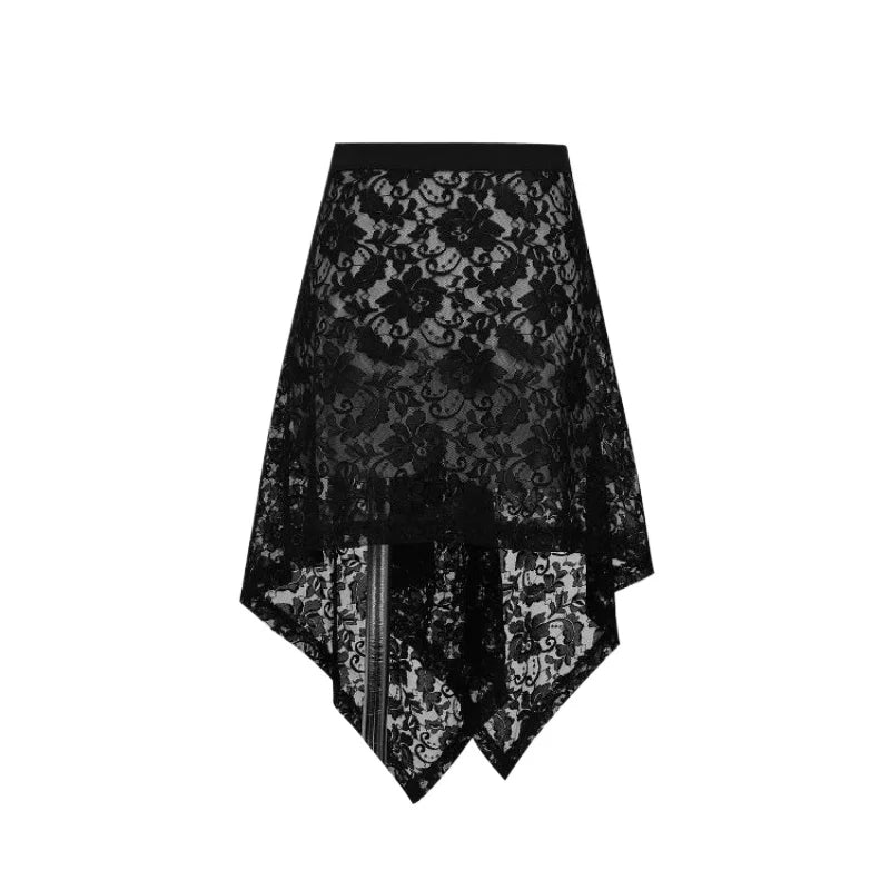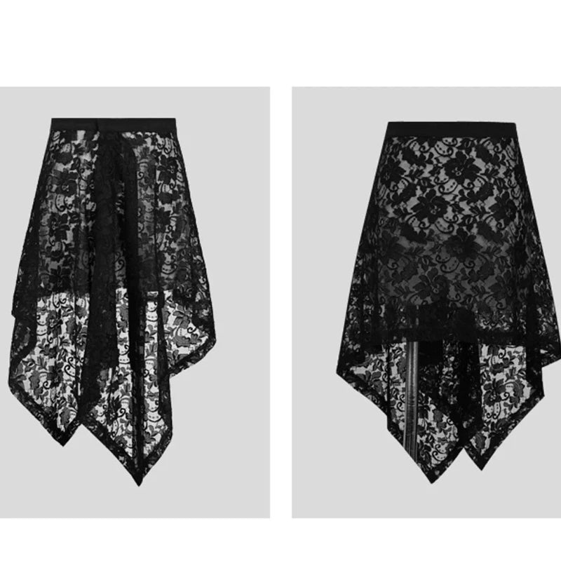 Bxoxo Sexy Lace Black Skirts for Women See Through Vintage Boho Short Skirts Tulle Elegant Irregular Y2k Skirt Aesthetics