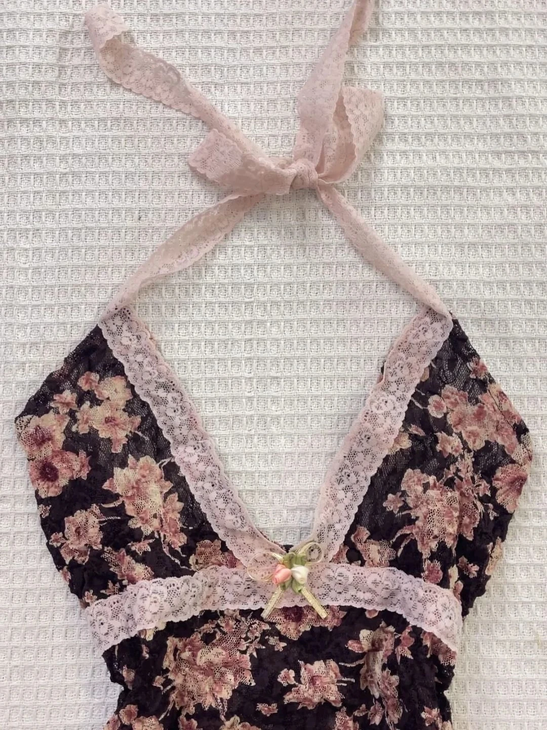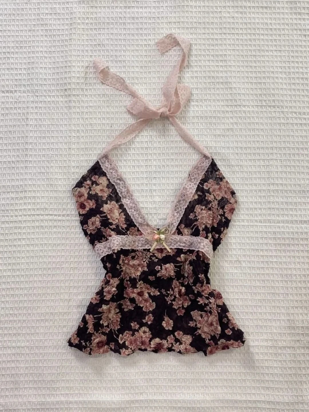BXOXO Sexy Lace camisole Women Sweet Clothes Floral Lace Halter Tops Gyaru coquettish Sling Top Femme Aesthetic Y2k Vintage Crop Top