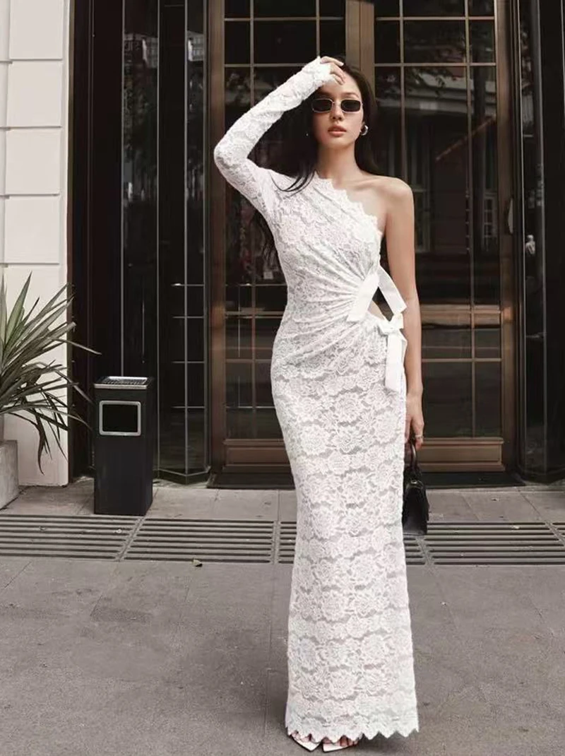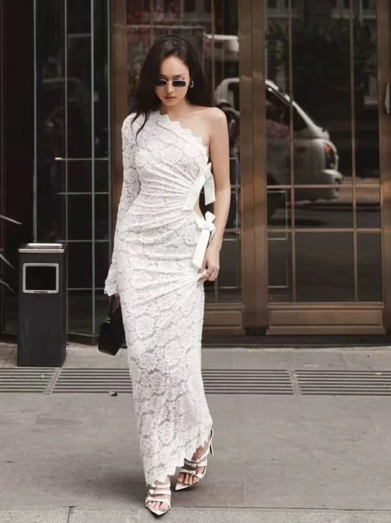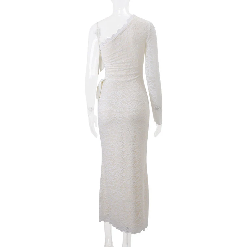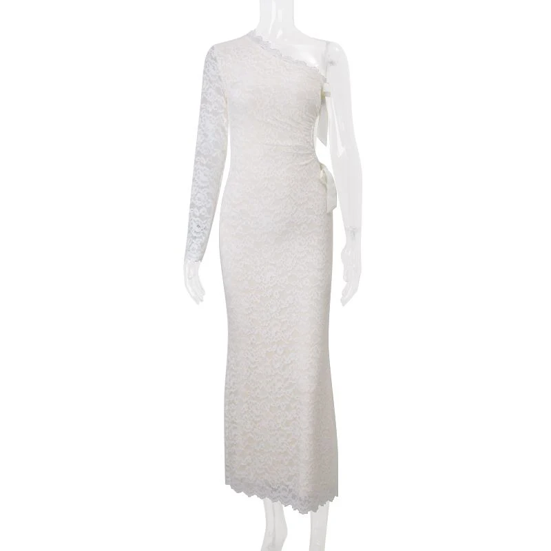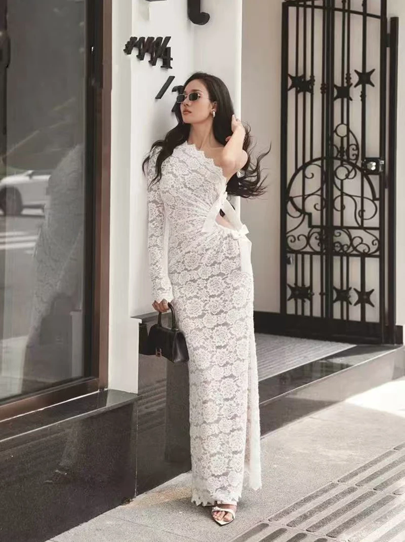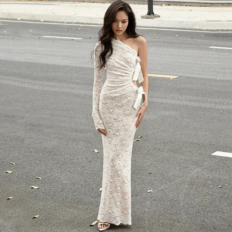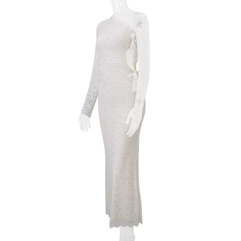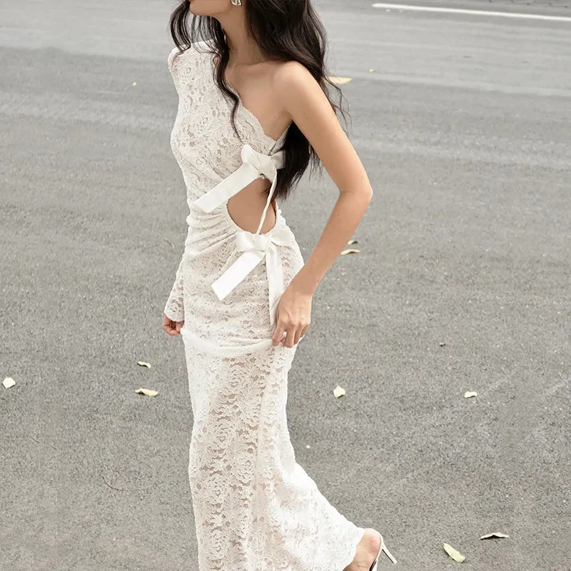 Bxoxo Sexy Slash Neck Lace Dress for Women Y2K Fashion Hollow Out Slim Midi Dress Femme Chic Tight Backless Party Night Vestidos Mujer