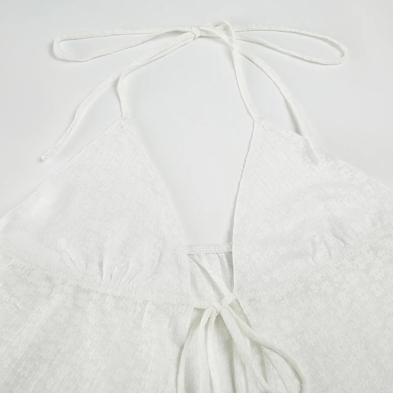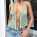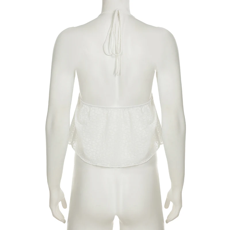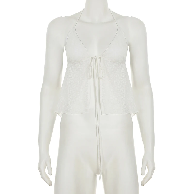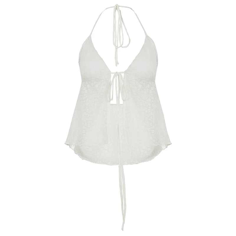 BXOXO Sexy Transparent Lace-up Split Camis Summer Holiday See Through Sleeveless Bandage Halter Crop Tops Vintage y2k Lady Tees