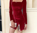 BXOXO Sexy Women Dress Velvet Split Party Clubwear Long Sleeve Slim Female Dresses Hot Black Bodycon Solid Mini Vestidos