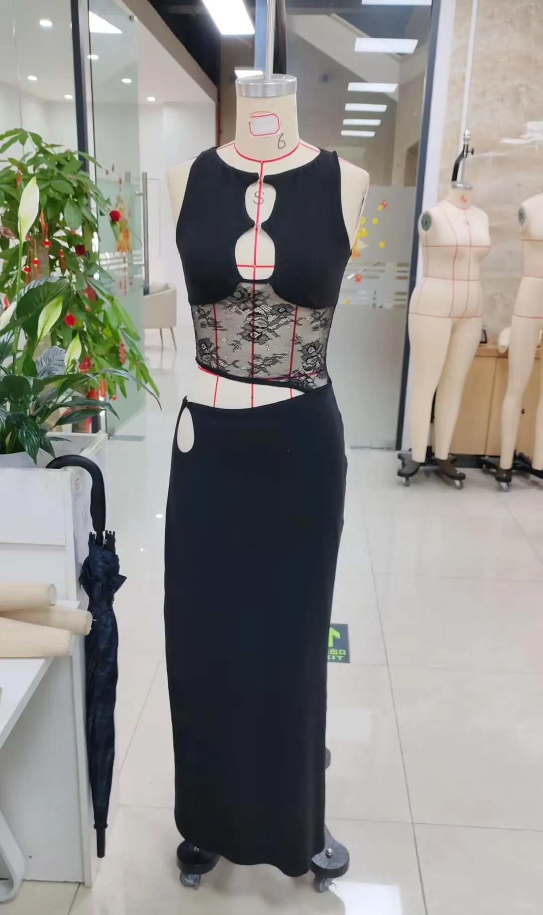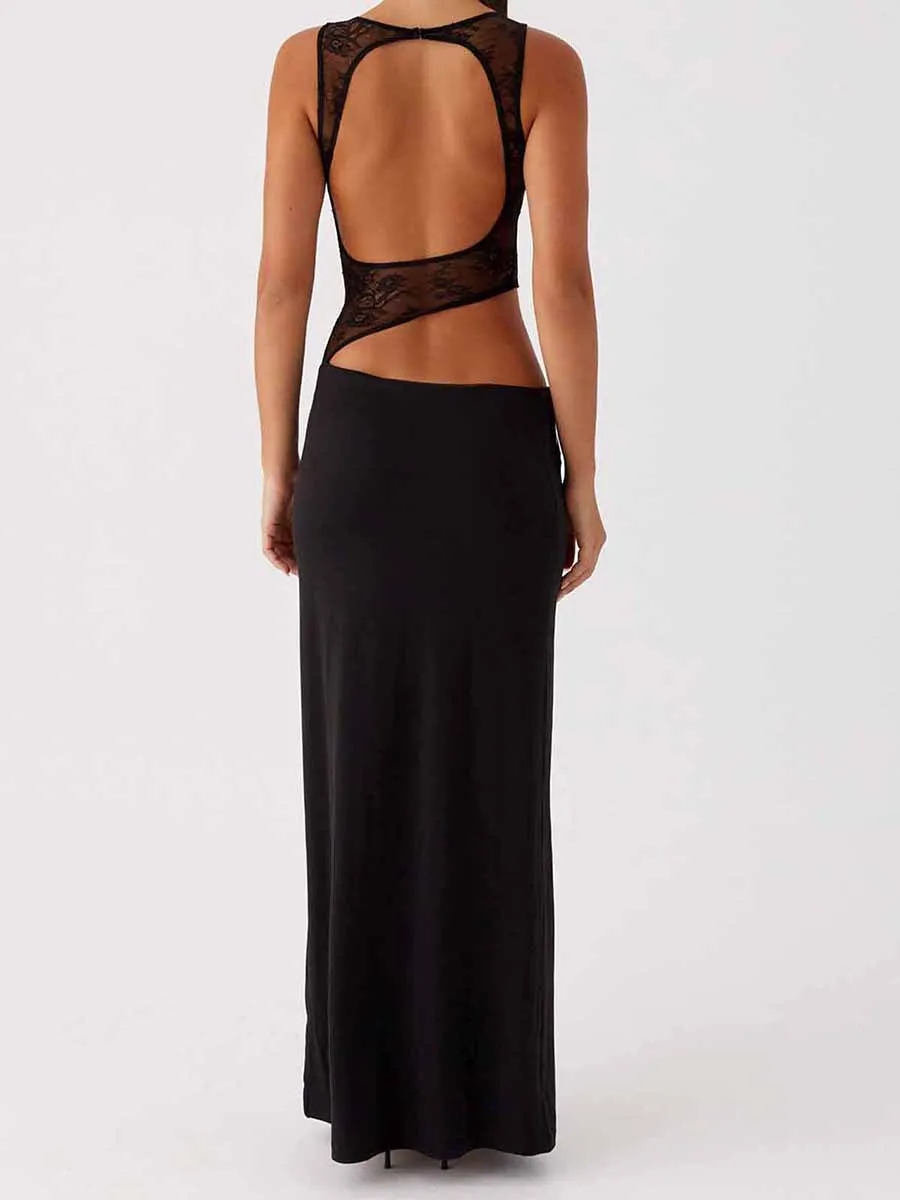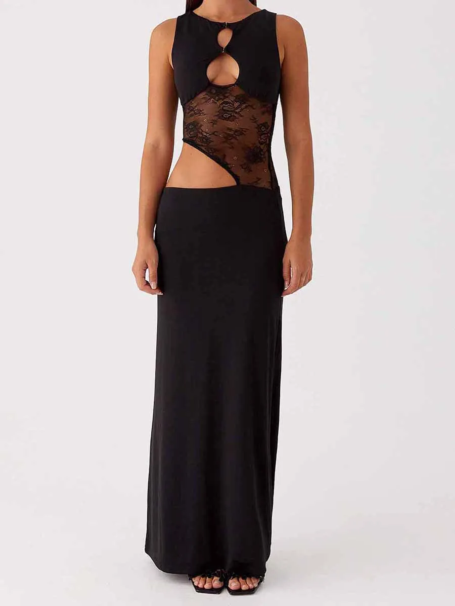 BXOXO Sexy Women Long Dress Lace Patchwork Hollow-Out Sleeveless Dress Summer Casual Fashion Bodycon Dress Party Night