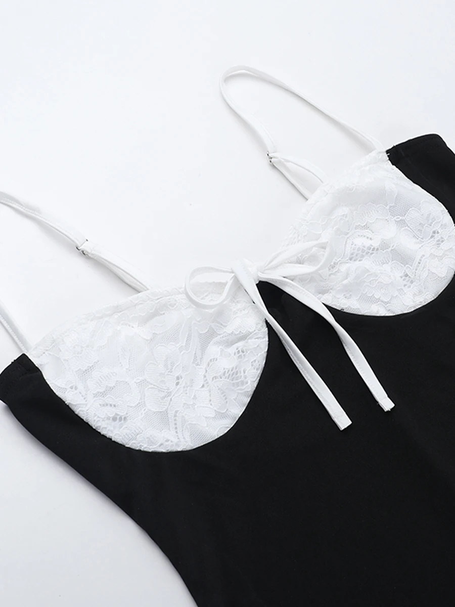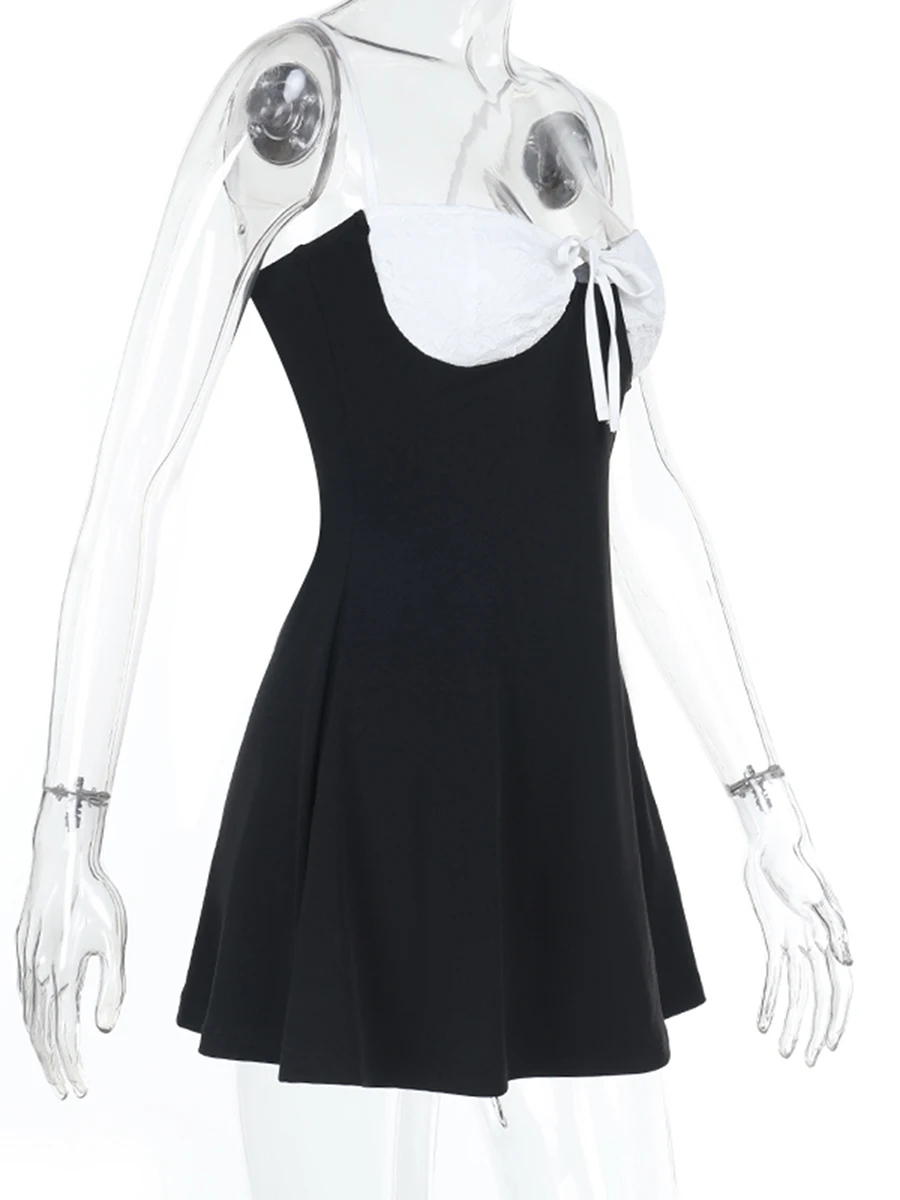 BXOXO Sexy Women’s Lace Patchwork Short Dress Summer Sleeveless Tie-up Front Slim Fit A-Line Dress Party Club Short Mini Dress