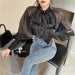 Bxoxo Shirts & Blouses Elegant Bow Lace Up Women Fashion Sleeve Blusas Mujer 2025 Early Autumn Perspective Casual All-match Blouses