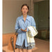 business casual outfits New High Design Large Lapel Zipper Shirt Pointed Collar Stacked Long Sleeve Shirt Lazy Style Blue Shirt for Women