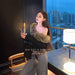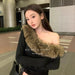business casual outfits Plush Stitching off-Neck Top Long-Sleeved T-shirt 2025 Spring Elegant Hot Girl Casual Trousers Suit