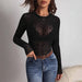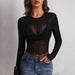 business casual outfits M2198 Women's Fashion Tight Leopard Print See-through Bottoming Shirt Flocking Jacquard Mesh Tight Top