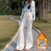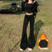 casual dinner outfit fall Orange Silk Women's Clothing# Autumn and Winter 2024 American Low Waist Thin Velvet Jeans Hot Girl Slim Elastic Slimming Flared Pants
