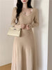 church outfit Korean Style Knitted Bottoming Knitted Dress Women's 2024 Autumn and Winter A- line Large Swing Dress