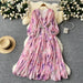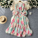 cybergoth dress to impress French Elegant Elegant Dress Women's High-Grade Lantern Sleeve Waist Slimming V-neck Printed Ruffled Dress