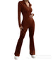dream clothes Women's Long-Sleeved Zipper Jumpsuit Shirt Collar Hip Lifting Slim-Fit Sexy Flared Trousers Jumpsuit