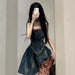 fall 2024 fashion trends French Style Sweet Hot Girl Tube Top Denim Dress Women's Summer High-Grade Waist Slimming Pettiskirt Small