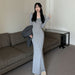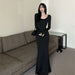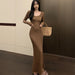fashion outfits Fall 2024 Hot Girl Elegant Long Sleeve Dress Women's Brown Bottoming Dress Slim Fishtail Solid Color Skirt