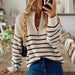 fashion outfits Sweater Turtleneck Autumn and Winter New Striped Color Matching Long Sleeve Women's Top Zipper Pullover Sweater