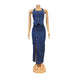 fashion outfits Women's Fashion Button Pocket Halter Split Denim Long Dress Suit