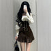 fbi agent costume Early Autumn Fashion Slimming Lantern Sleeve Fake Two-Piece Western Style Tight Waist Top High Waist Short Skirt Retro Two-Piece Suit
