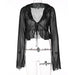 fruitful fashion dress to impress Fall 2024 Popular New Style Wooden Ear Lace-up Deep V-neck Long Sleeve Transparent Top Women's Clothing