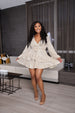 leapord halloween outfit C3153 Women's Clothing Popular Sequined V-neck Layered Lace-up Long Sleeve Skirt