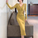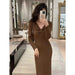 outfit inspo Autumn and Winter Retro French Temperament Dress Women's Design Bow Inner Base Split Sheath Sweater Dress