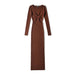 outfit inspo Hot Girl Spring and Autumn Sexy French Ins Slim-Fit Sheath Knitted Hollow Sweater Dress Deep V Twisted Split Dress