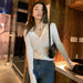 outfit inspo Korean Style Polo Collar Sweater Women's New Design Double Collar Chic Early Autumn Chic Top Bottoming Shirt