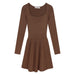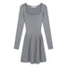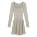 soulja boy outfits Women's Square Collar Long-Sleeved Knitted Dress Autumn Slim-Fit Bottoming Skirt Tight Waist Pleated A- line Sweater Skirt