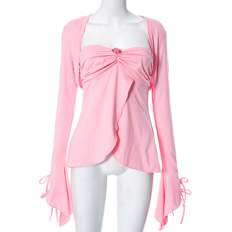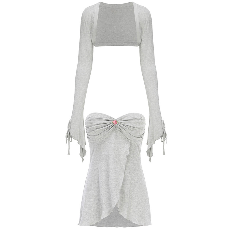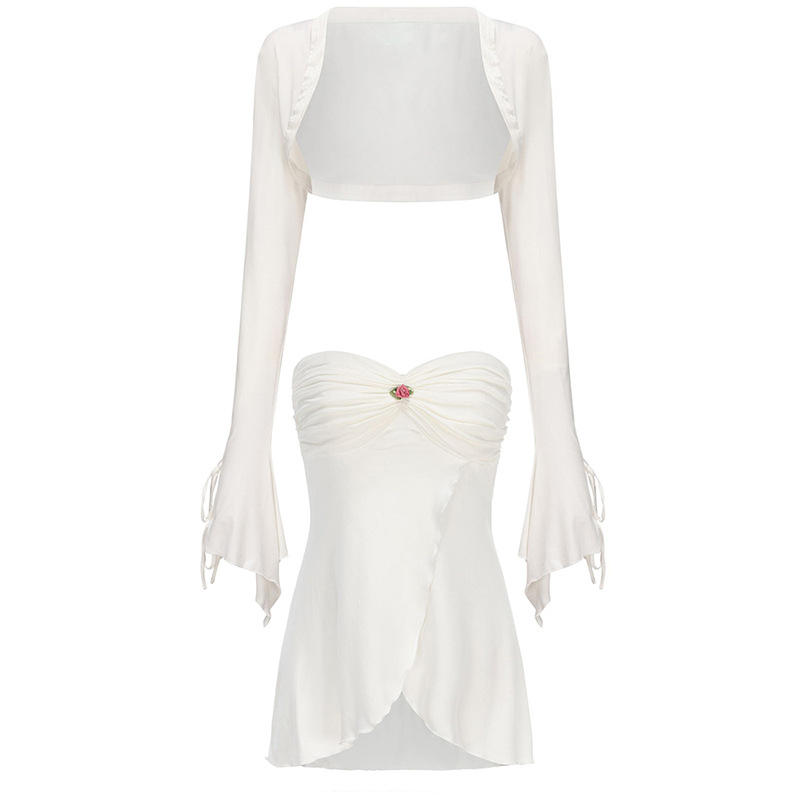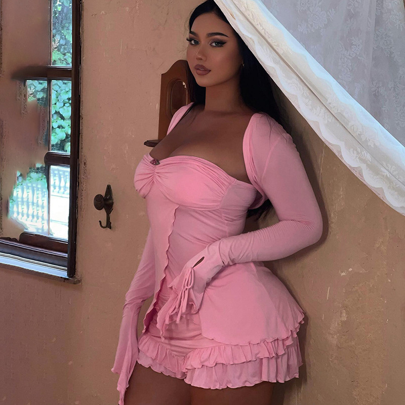 princess costume ideas Ysk435 Women's Autumn and Winter Wrapped Chest Long Sleeve Shawl Pleated Ruffled Short Skirt Casual Suit Women
