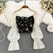 teacher outfits French Style Retro Elegant Embroidered Long Sleeve Square Collar Pullover Shirt Women's Slim Fit Western Style Short Outer Chiffon Shirt Top