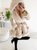 Women's Long-Sleeved Warm Solid Color Lace-up Belt Fur Stitching Ruffled Hooded Jacket