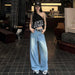 y2k outfits Light Blue Worn Washed Blue Denim Wide-Leg Pants Women's Loose Slimming Straight Pants Mop Pants