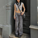 y2k outfits Street Retro Style Low Waist Denim Overalls Star Print Large Pocket Straight Casual Pants