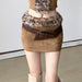 y2k outfits Waste Soil Tribal Sense Furry Stitching Suit Women's Hot Girl Slim Backless Tube Top Low Waist Hip Slimming Skirt