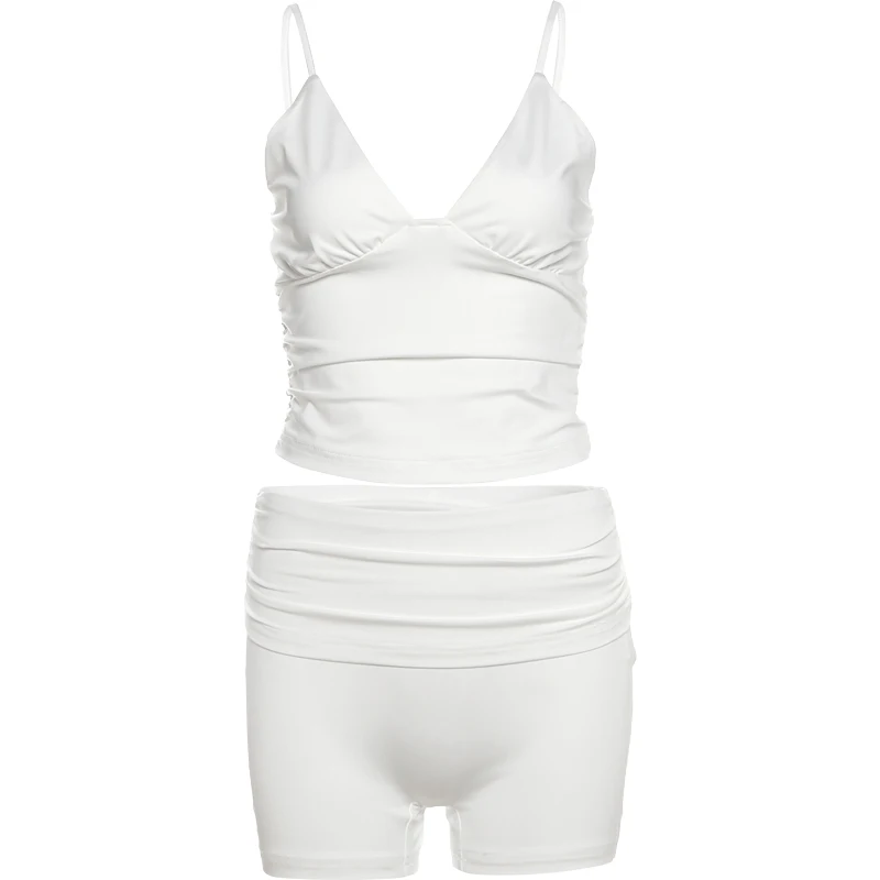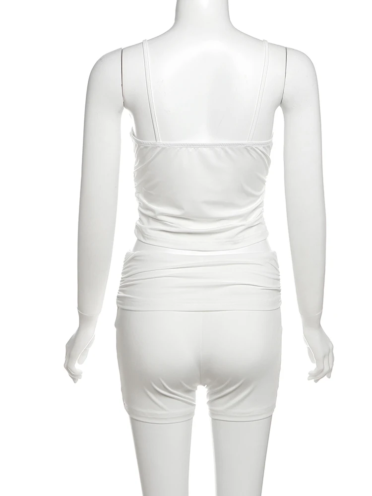 BXOXO Simple 2 Piece Set Women Low-Neck Backless Tank Tops+Skinny Peach Hip Shorts Thin Street Fashion Classic Casual Outfits