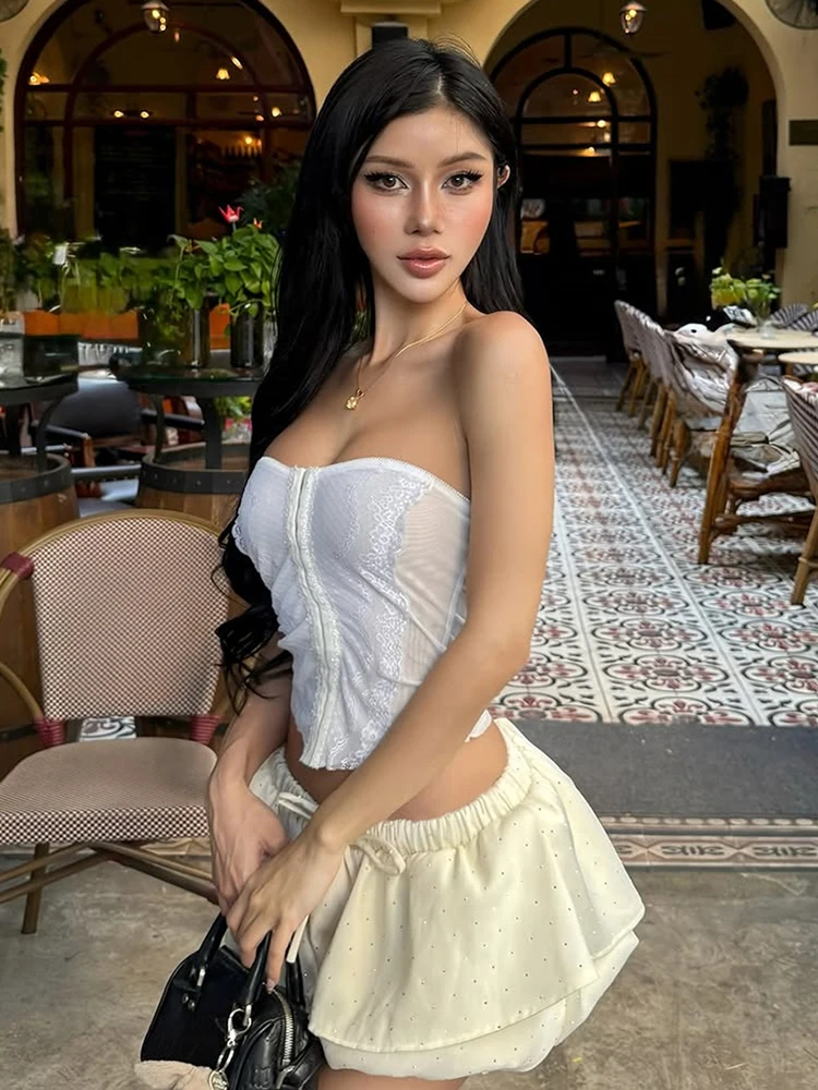 BXOXO Simple Lace Women Strapless Tops Single-Breasted Concealed Buckle Skinny Summer New Trend Versatile Classic Clothes