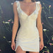 Bxoxo Solid Deep V-neck Sleeveless Dress Summer Elegant Women Ruffles Split Mini Dresses Sexy Slim Party Clubwear Vestido
