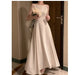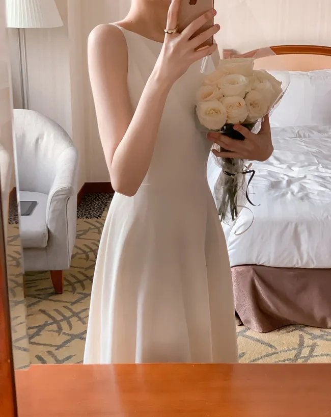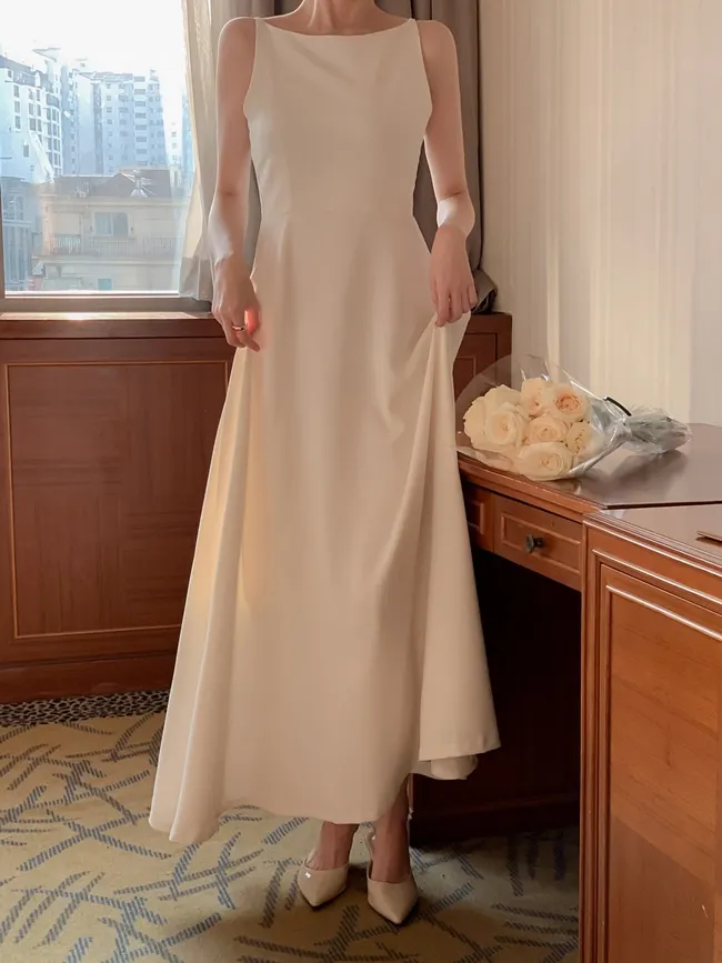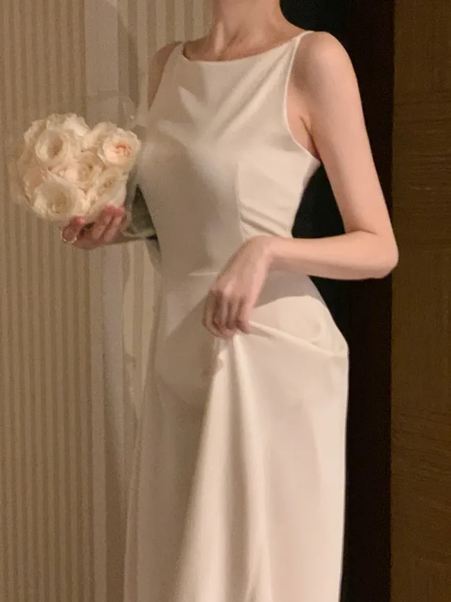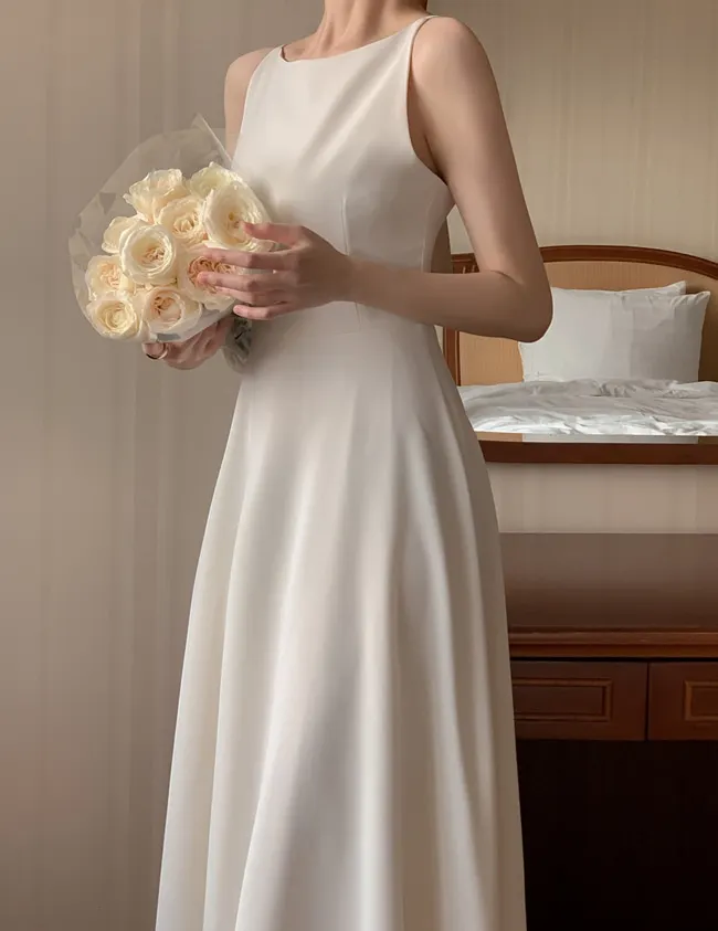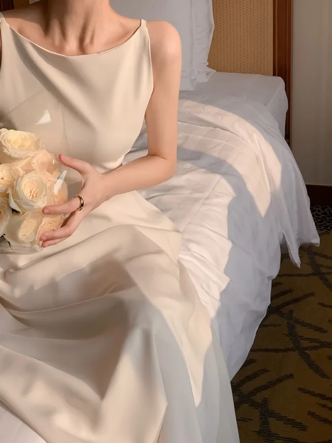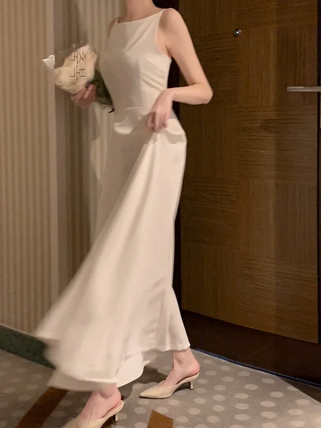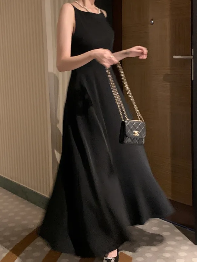 Bxoxo South korea Chic Gentle Sle Light Luxury off-Shoulder Advanced Design Sense Sleeveless Long Versatile Dress