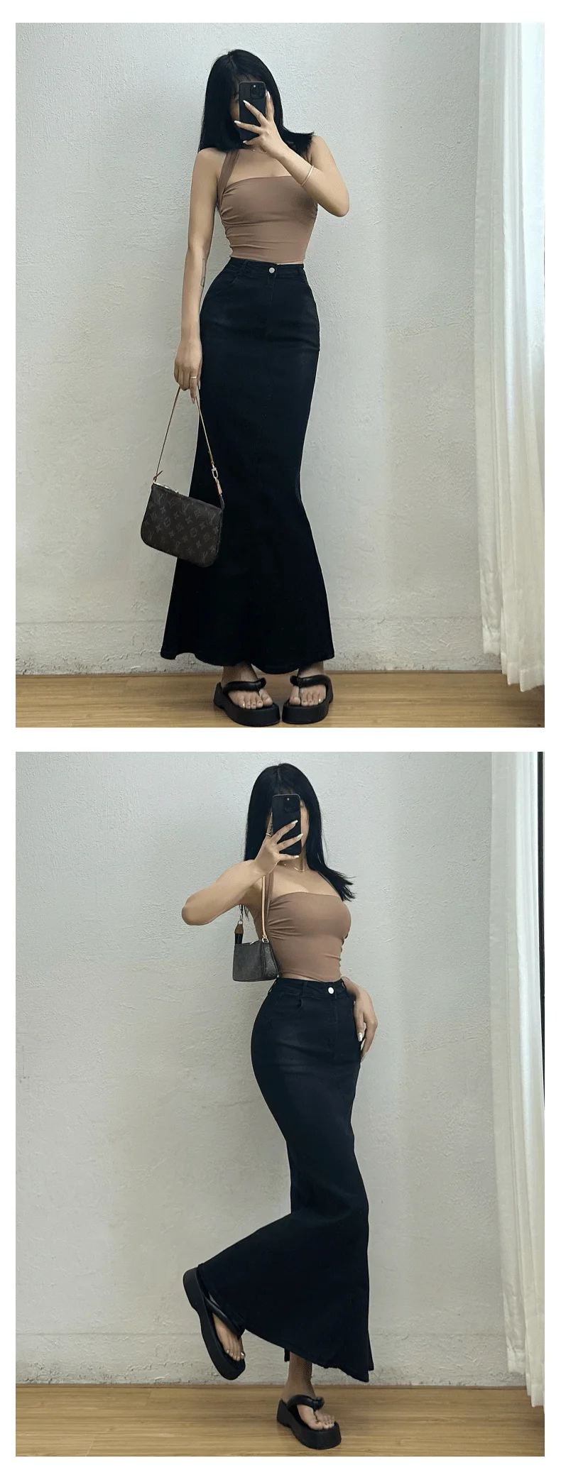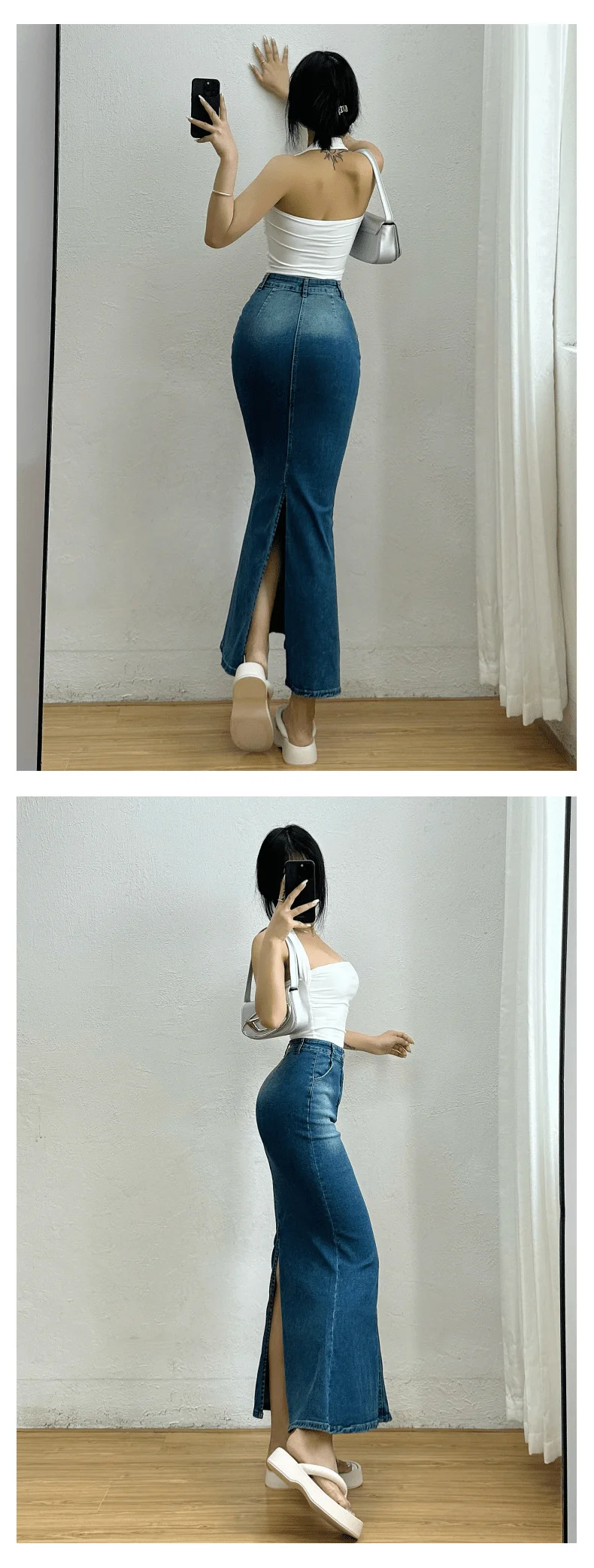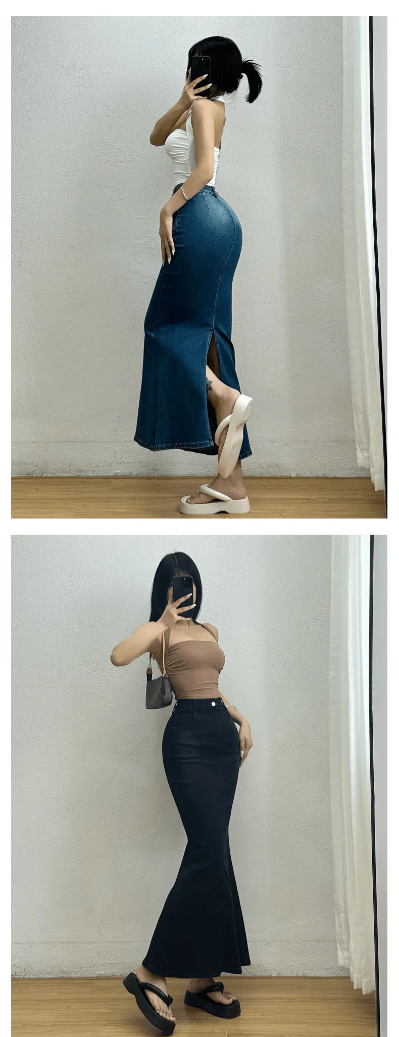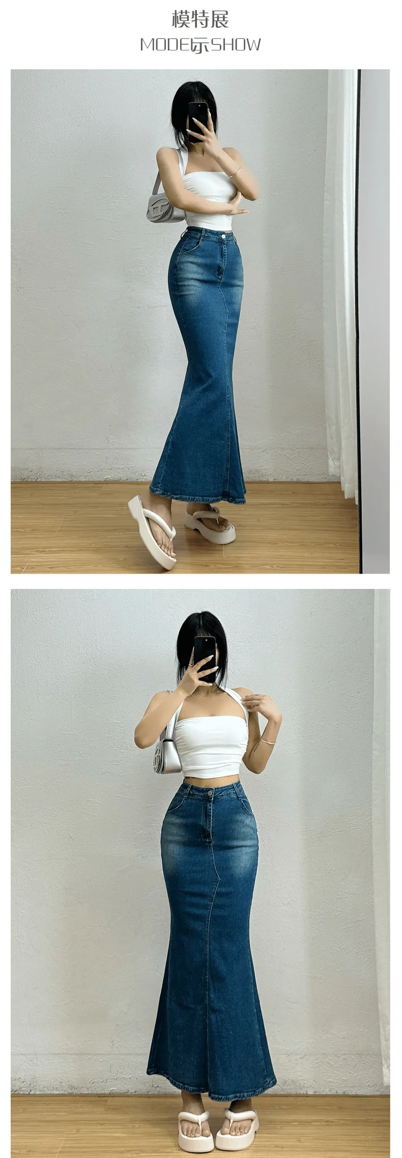 Bxoxo Spicy Girl Washed Denim Fishtail Half Skirt Women Summer High Waist Slim Split Slim Hip Long Skirt Fashion 2023 2Q1K