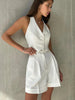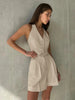 Bxoxo Spring Summer Women Office Shorts Suit Set Solid Khaki Sleeveless Halter Outfit 2 Piece Matching Sets For Women